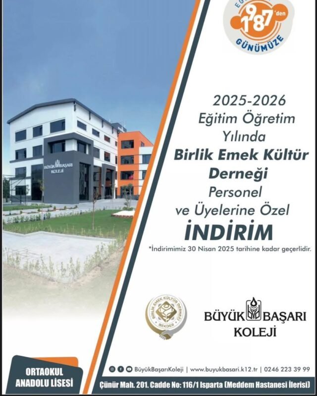 Büyük Başarı Eğitim kurumlarıyla Derneğimiz üyeleri arasında 2025-2026 Eğitim Öğretim yılı için Eğitim paketi anlaşması yapıldı.